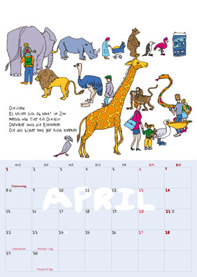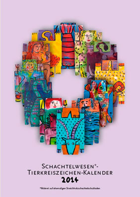 Das aufhängbare Werk mit 4 Schachtelwesen und 11 Illustrationen kann auch ohne Kalendarium geliefert werden, ebenfalls € 18+Versand